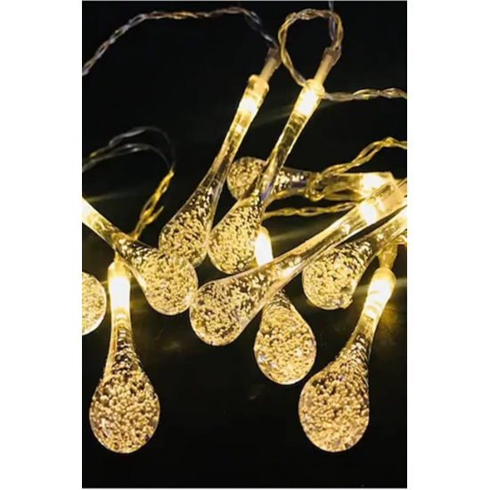 10 Led 2 Metre Sarı Kristal Su Damlası Güneş Enerjili Led Işık Solar Bahçe Ağaç Lamba Aydınlatması