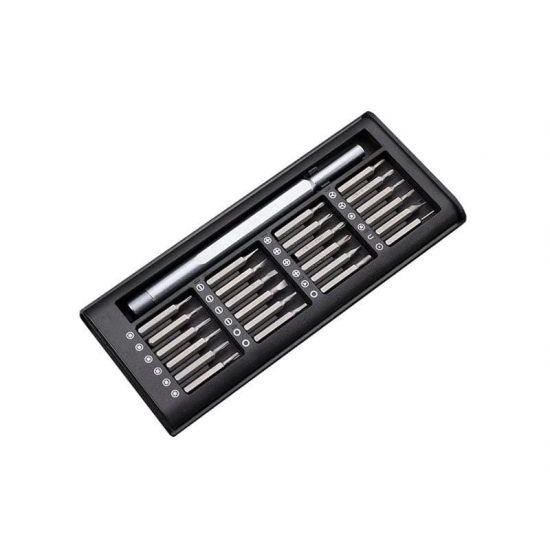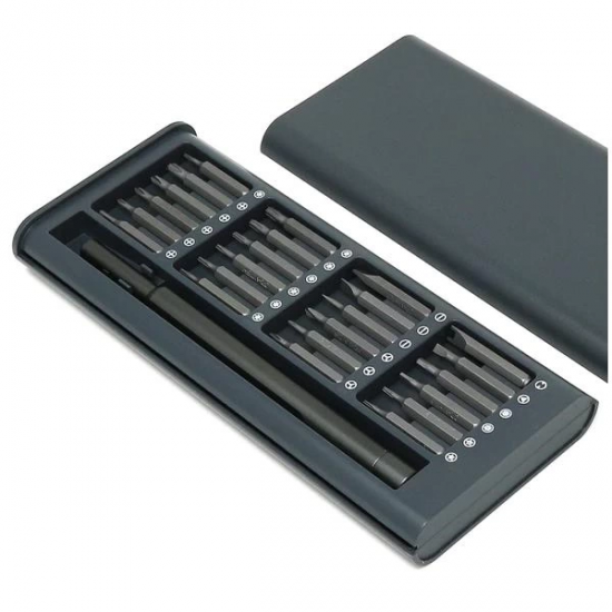 • Özellikler: * Ürün adı: 25 1 tornavida seti * Sap malzemesi: alüminyum * Bit malzemesi: çelik * Kasa malzemesi: plastik.