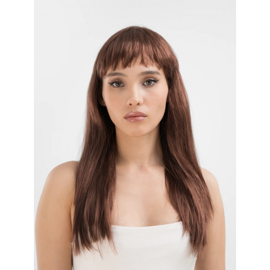 Kahve Renk Uzun Düz Parti Peruğu - Uzun Kahverengi Peruk