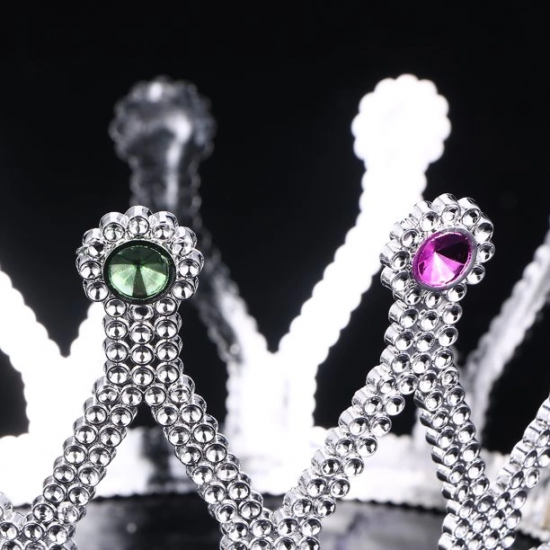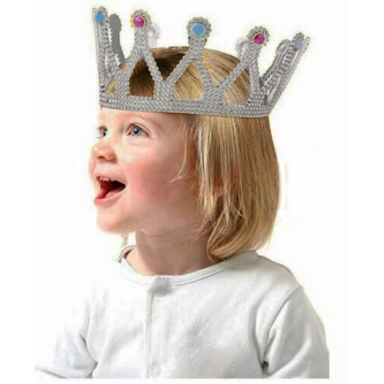 Gümüş Renk Çocuk Ve Yetişkin Uyumlu Kraliçe Tacı Prenses Tacı 8x25 Cm