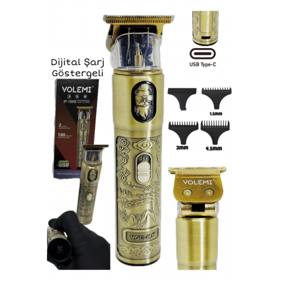 • VOLEMI IP-1949 Profesyonel Şarjlı Tıraş Makinesi | Dijital Ekranlı | USB Type-C | Sakal Saç Kesme Makinesi Kişisel bakım aletleri arasında en çok tercih edilen VOLEMI IP-1949 profesyonel tıraş makinesi, güçlü motoru, keskin bıçakları ve şık tasarımıyla tıraş makinesi kategorisinde öne çıkıyor.